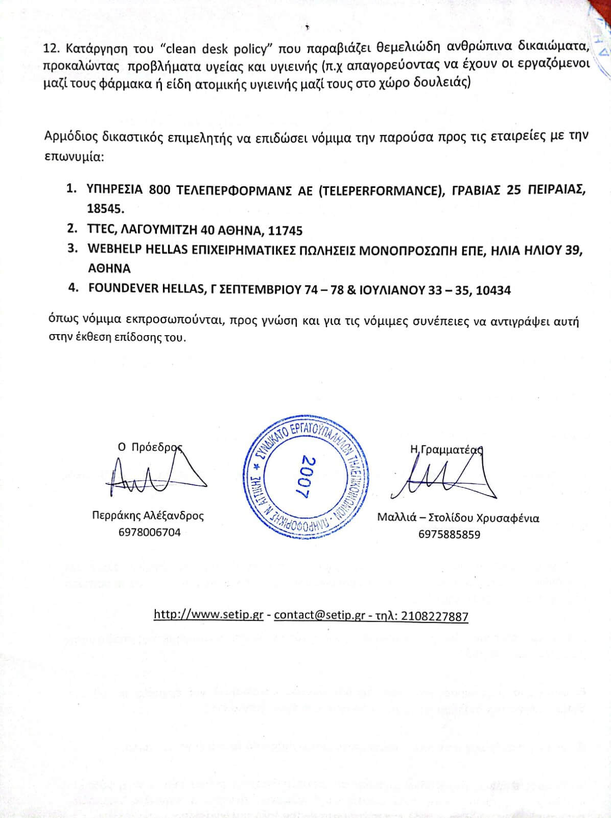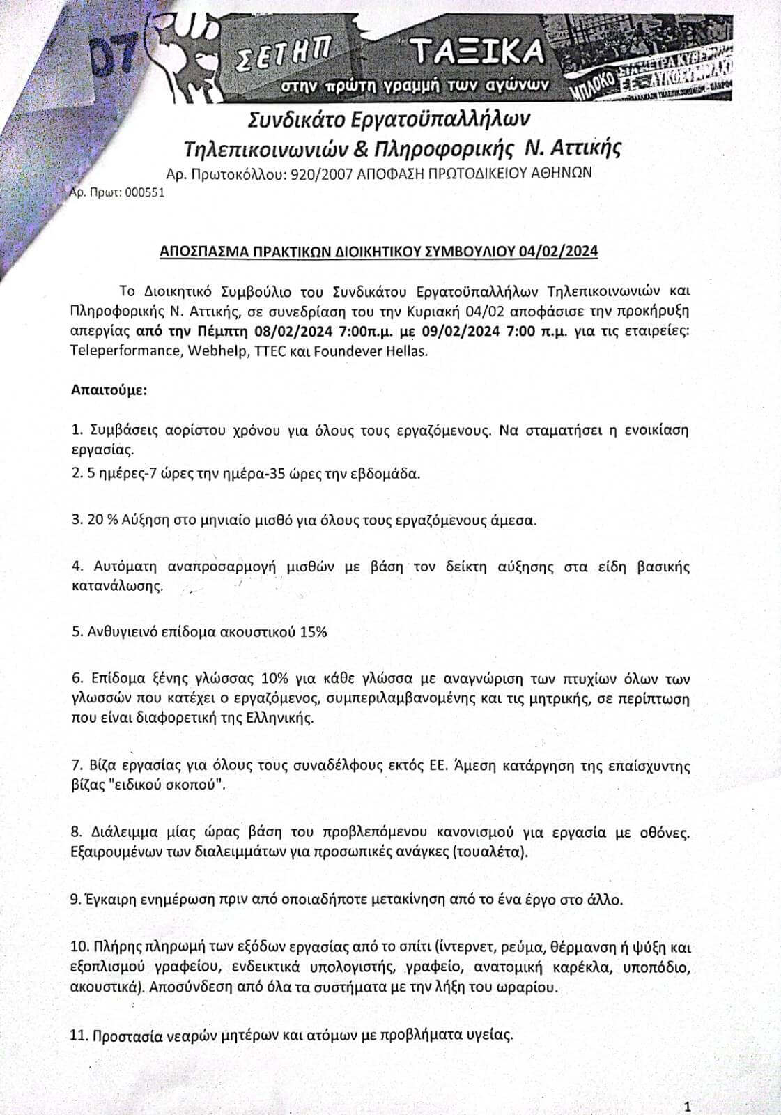 In response to the intentional lies made by the management of call centers alleging that our Union has not reached out to them in order to legally announce tomorrow’s strike, we assert that we have indeed contacted all of them with our demands. They are fully aware! To prove that, we publicly provide the following documents, officially handed over to them by lawyer on the 5th of February. We remain open to addressing any sincere inquiries but have no tolerance for their propaganda.